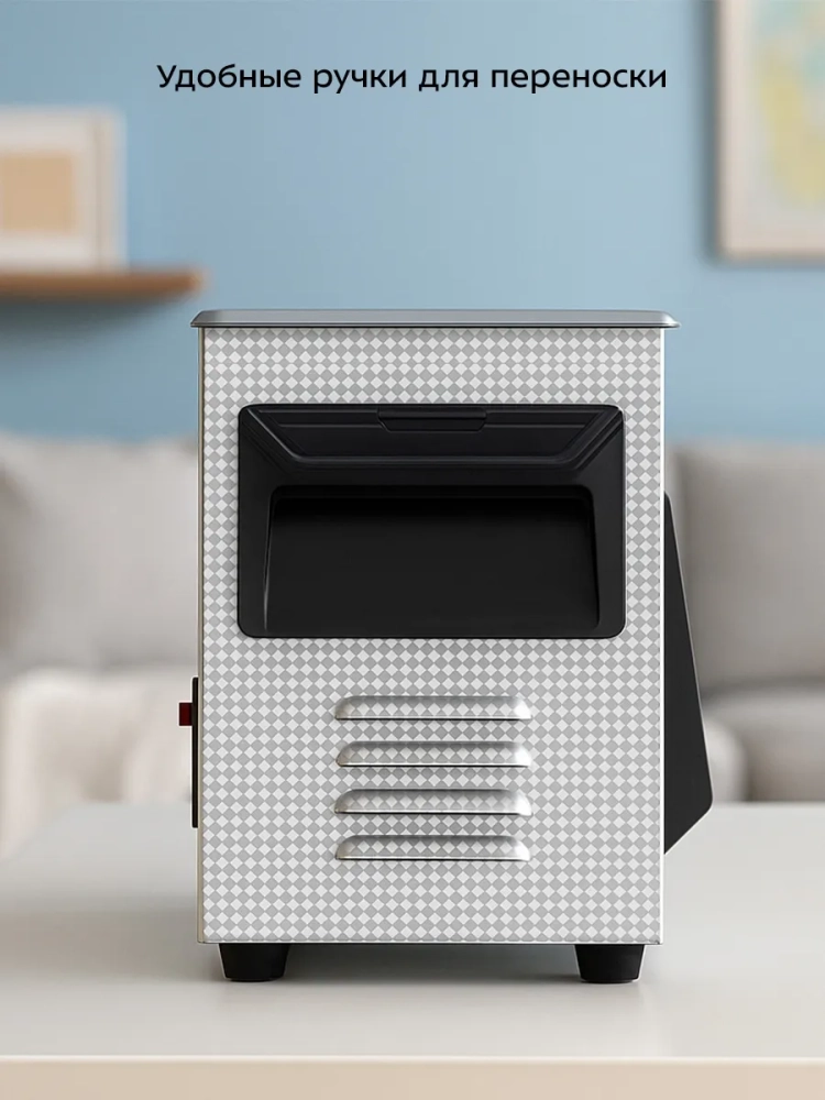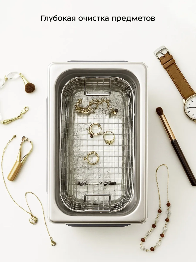 Корпус прибора, крышка и резервуар сделаны из нержавеющей стали. Благодаря большому размеру резервуара вы можете очищать более крупные предметы или много небольших предметов за 1 раз.