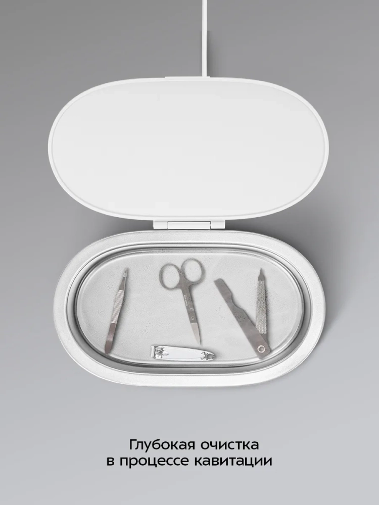 Корпус ультразвуковой мойки сделан из пластика, а резервуар, в который помещаются предметы для очистки, — из нержавеющей стали.