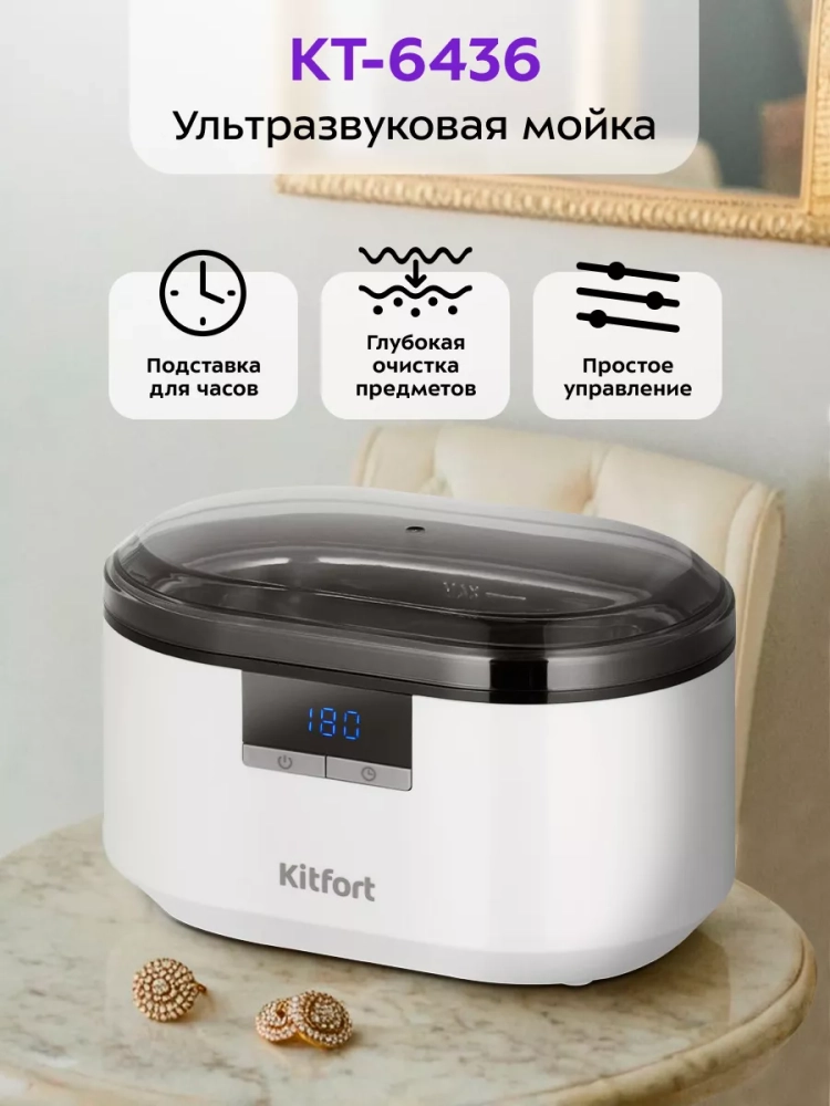 Ультразвуковая мойка Kitfort КТ-6436 поможет эффективно очистить и продезинфицировать небольшие изделия из металла, пластика и стекла. Ультразвуковая очистка — способ очистки поверхности твёрдых тел в жидкости, при котором в жидкость вводятся ультразвуковые колебания. Применение ультразвука значительно ускоряет процесс очистки и повышает качество очистки. В качестве жидкости в ультразвуковой мойке можно использовать воду, а также чистящие или дезинфицирующие растворы.