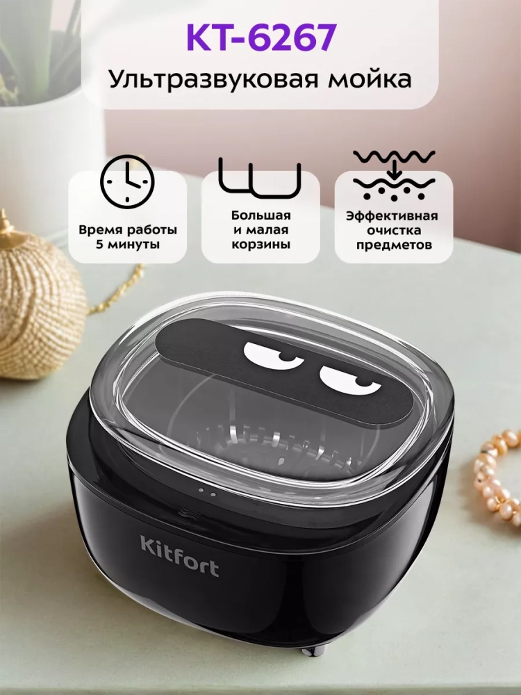 Ультразвуковая мойка Kitfort КТ-6267 поможет эффективно очистить и продезинфицировать небольшие изделия из металла, пластика и стекла. Ультразвуковая очистка — способ очистки поверхности твёрдых тел в жидкости, при котором в жидкость вводятся ультразвуковые колебания. Применение ультразвука обычно значительно ускоряет процесс очистки и повышает его качество. В качестве жидкости в ультразвуковой мойке можно использовать воду, а также чистящие или дезинфицирующие растворы.