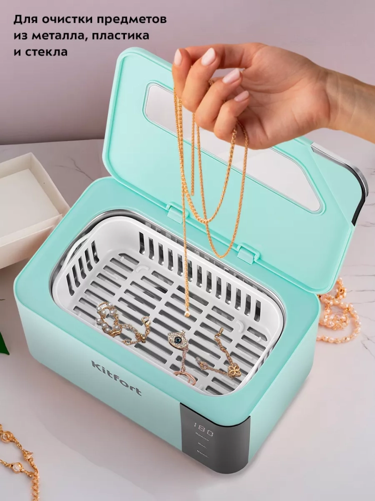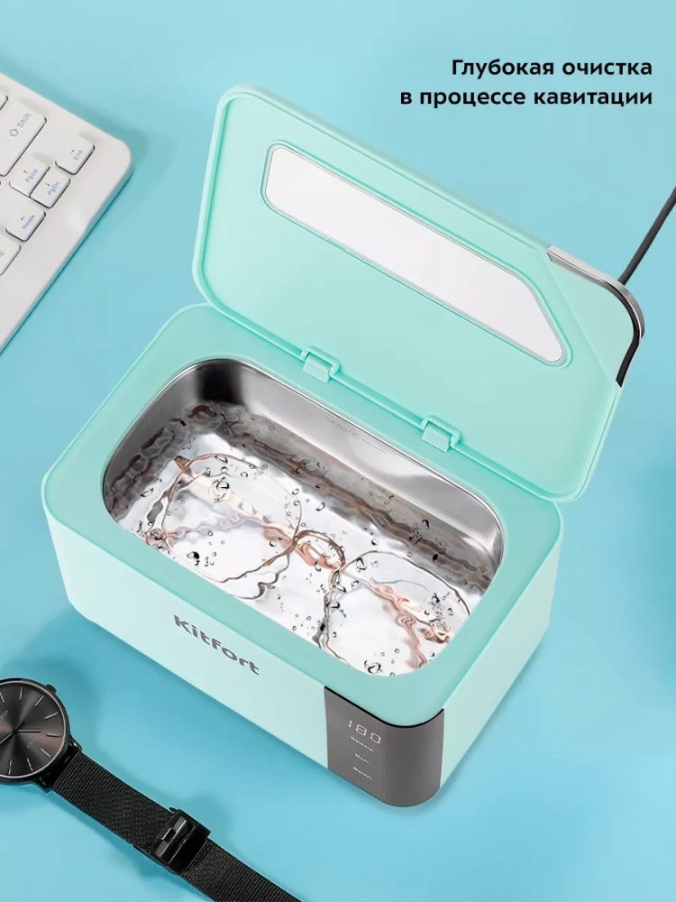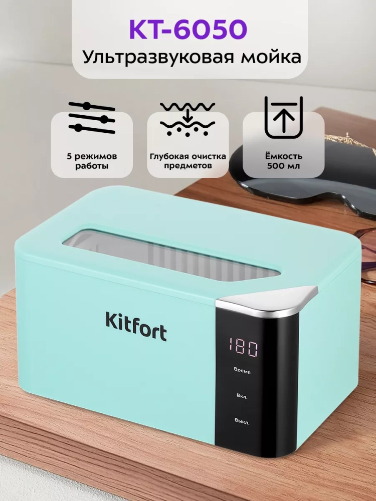 Ультразвуковая мойка Kitfort КТ-6050 поможет эффективно очистить и продезинфицировать небольшие изделия из металла, пластика и стекла. Ультразвуковая очистка — способ очистки поверхности твёрдых тел в жидкости, при котором в жидкость вводятся ультразвуковые колебания. Применение ультразвука значительно ускоряет процесс очистки и повышает качество очистки. В качестве жидкости в ультразвуковой мойке можно использовать воду, а также чистящие или дезинфицирующие растворы.