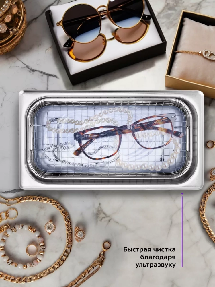 Корпус прибора, крышка и резервуар сделаны из нержавеющей стали. Благодаря большому размеру вы можете очищать более крупные предметы или много небольших предметов за 1 раз.