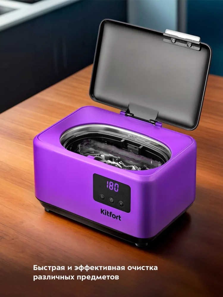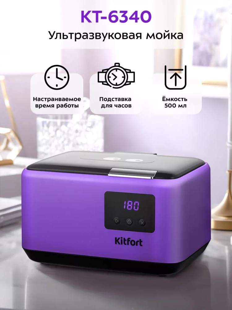 Ультразвуковая мойка Kitfort КТ-6340 поможет эффективно очистить и продезинфицировать небольшие изделия из металла, пластика и стекла. Ультразвуковая очистка — способ очистки поверхности твёрдых тел в жидкости, при котором в жидкость вводятся ультразвуковые колебания. Применение ультразвука значительно ускоряет процесс очистки и повышает качество очистки. В качестве жидкости в ультразвуковой мойке можно использовать воду, а также чистящие или дезинфицирующие растворы.