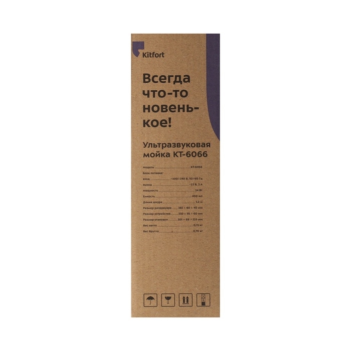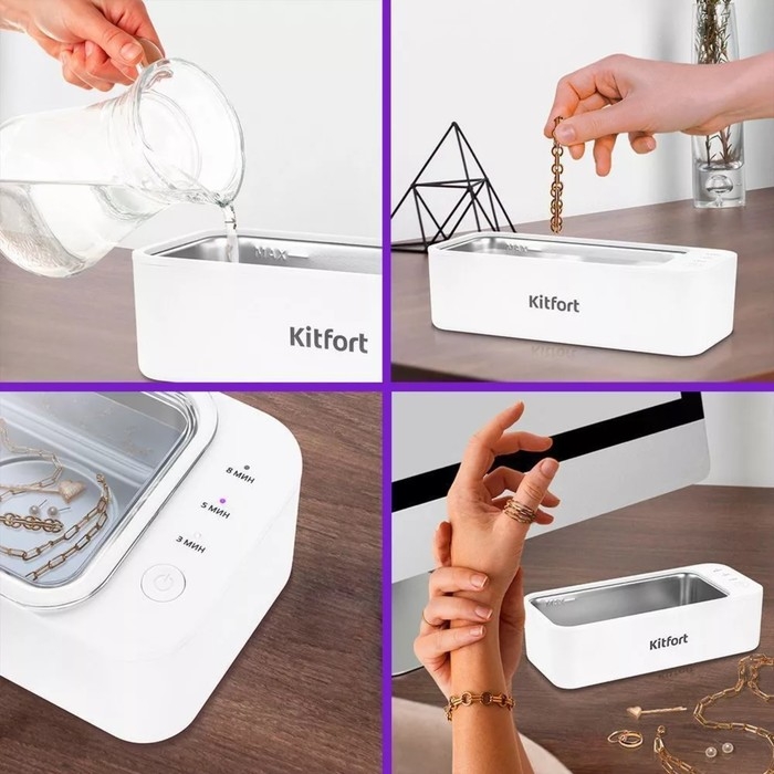 Ультразвуковая мойка Kitfort KT-6066, 24 Вт, 400 мл, 165х80х40 мм, белая