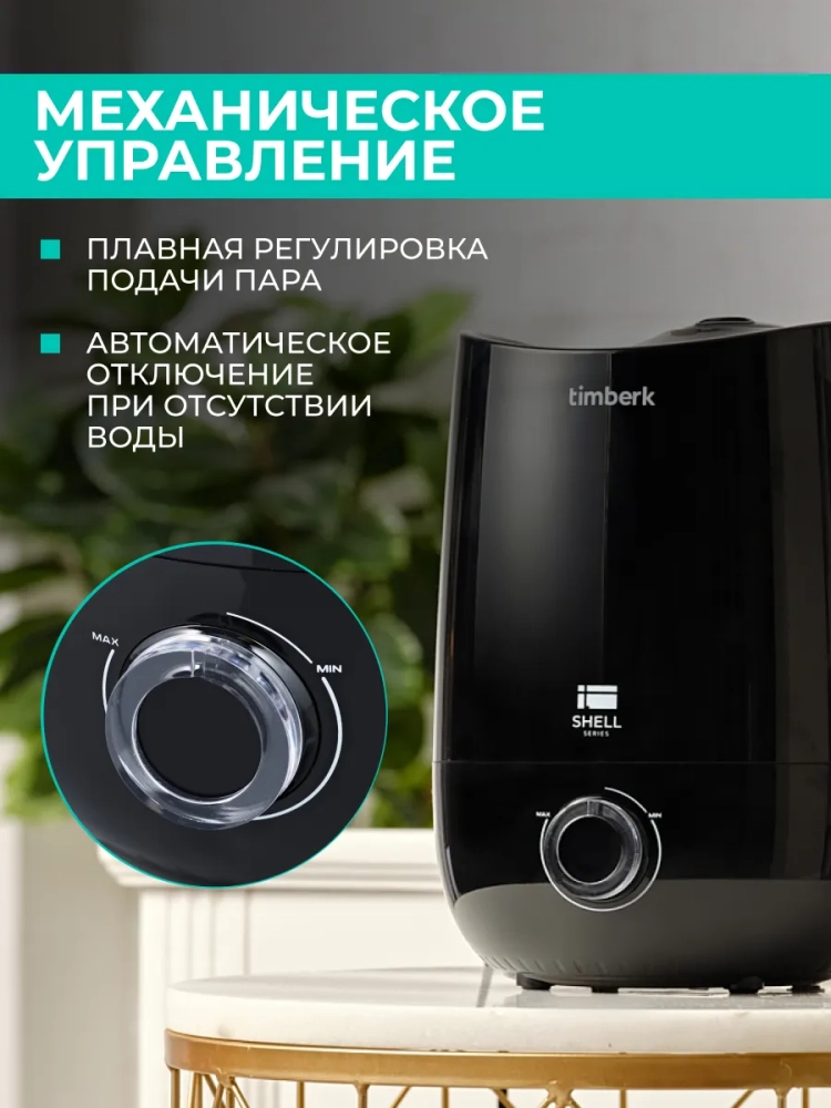 Ультразвуковой увлажнитель воздуха Timberk T-HU3-A17M-BL с настольной установкой отличает расход жидкости, не превышающий показатель 300 мл/ч. Одноименная технология автоматически выключит устройство при нехватке воды в основной емкости. Функция ароматизации заполнит пространство приятным запахом.