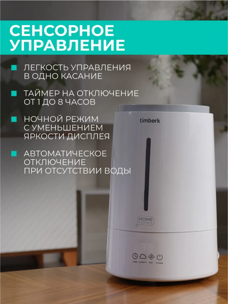 Прекрасным помощником в поддержании необходимого уровня влажности воздуха станет ультразвуковой увлажнитель воздуха Timberk T-HU4-A100E-WF. Принцип работы этого прибора основан на превращении воды в пар при помощи ультразвуковой мембраны. Увлажнители Timberk представлены в множестве решений с точки зрения дизайна и функциональных возможностей.