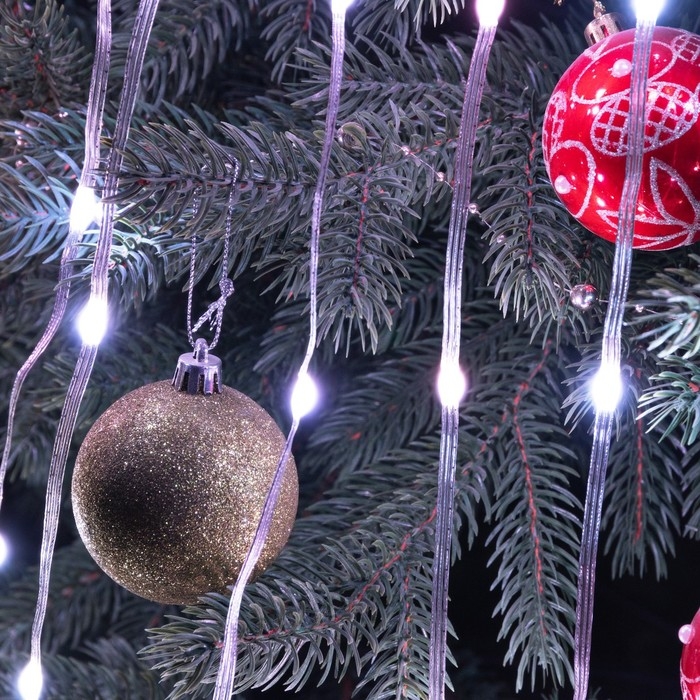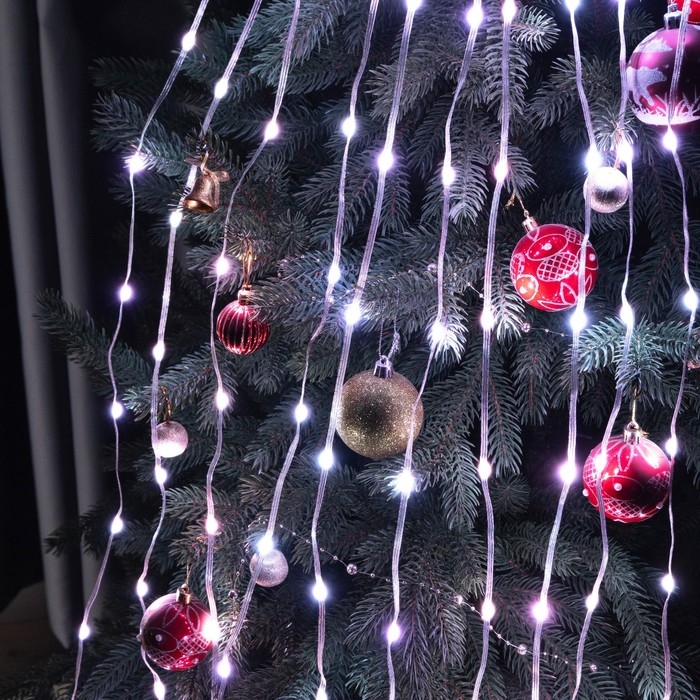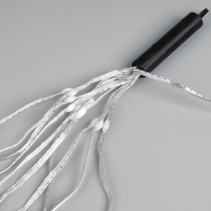 Умная гирлянда «Конский хвост» 10 нитей по 1 м роса, IP20, серебристая нить, 100 LED, пульт ДУ, приложение, свечение RGB, USB