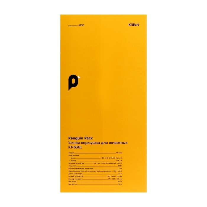 Умная кормушка для животных Kitfort КТ-6361, 10 Вт, 3.5 л, бело-чёрная