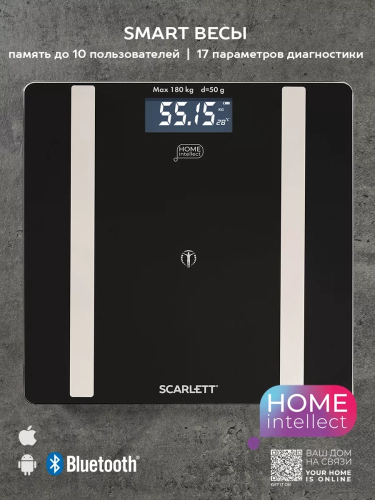 Умные весы Scarlett SC-BS33ED101 из юбилейной коллекции Silver Line прошли многочисленные тесты и являются нашей флагманской моделью, благодаря точности измерений, простоте использования и премиальному дизайну. Мы постарались сделать их максимально комфортными в использовании, чтобы вы могли отследить, является ли эффективными ваши тренировки или, возможно, вам необходимо скорректировать свой план питания. Весы SC-BS33ED101 позволяют хранить данные до 8 пользователей.ЛЕГКОСТЬ ИСПОЛЬЗОВАНИЯ-мгновенное измерение параметров телаВЫСОКАЯ ТОЧНОСТЬ 4-высокочувствительных датчика обеспечивают корректность измеренийОТСЛЕЖИВАЙТЕ СВОИ РЕЗУЛЬТАТЫ-эти умные весы отслеживают 10 ключевых показателей вашего тела, включая вес, процентное содержание жира и водыБОЛЬШОЙ ЖК-ДИСПЛЕЙ-крупный размер цифр и яркий дисплей с подсветкой. Умная бытовая техника, весы для взвешивания спортивные для похудения высокоточные, smart, мини, home, fit, mi, ксиоми, смарт, смартвесы, xiaomi.