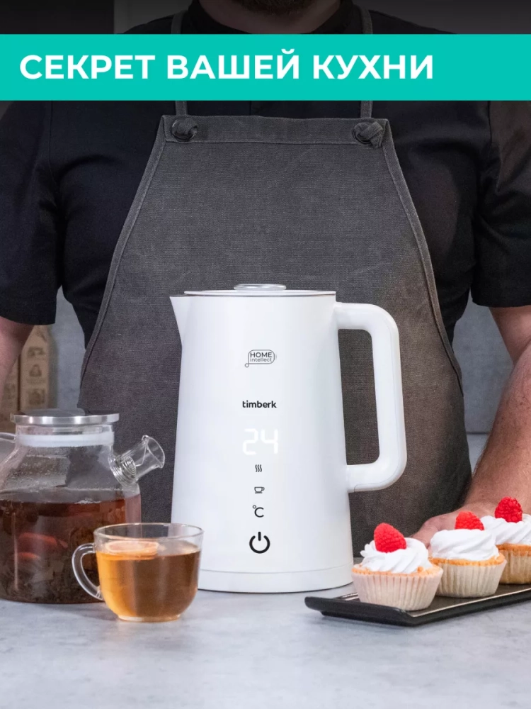 Умный электрический чайник Timberk T-EK21S103WF упростит процесс приготовления напитков. Чайник оснащен дистанционным управлением, с помощью которого можно использовать голосовые команды, настраивать расписание и регулировать температуру нагрева с шагом в 1°. Функция поддержания температуры воды до 12 часов сохранит вкус и состав воды. Двойные стенки делают внешнюю поверхность чайника безопасной для прикосновения. Съемная крышка для легкого ухода за поверхностью чайника. Чайник оснащён системой защиты от сухого кипячения, если в чайнике нет или мало воды, он автоматически отключится.
