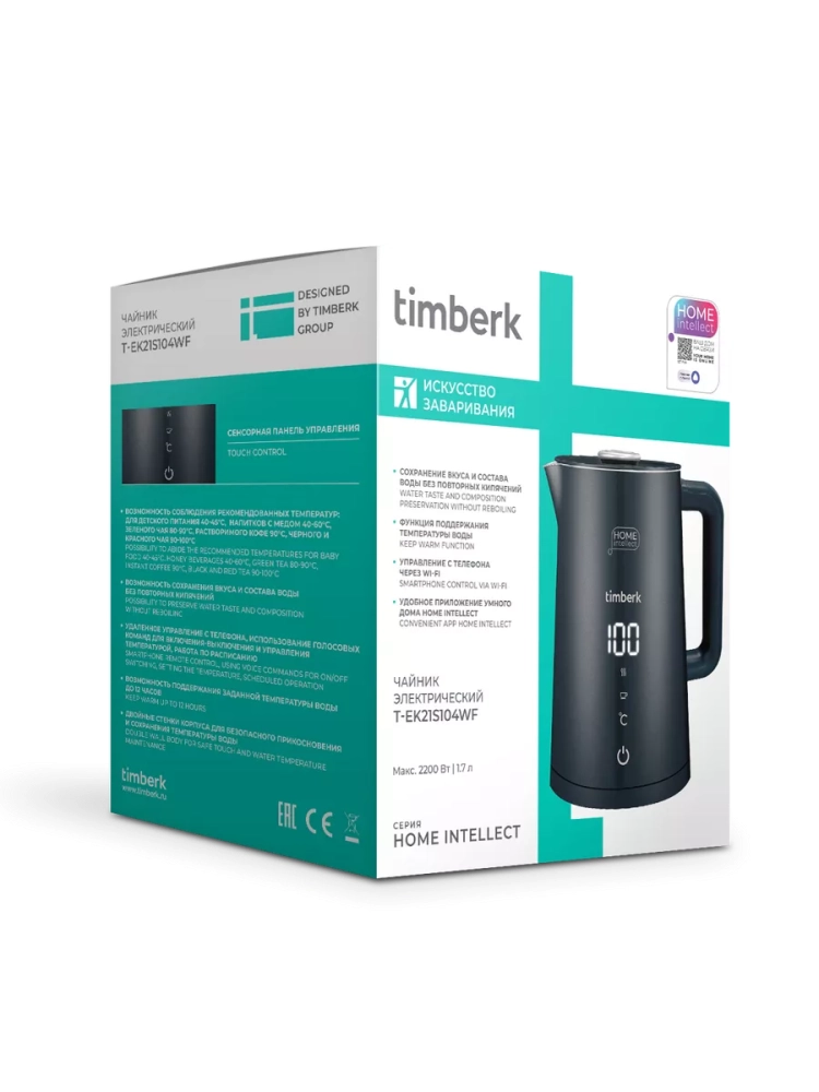 Умный электрический чайник Timberk T-EK21S104WF упростит процесс приготовления напитков. Чайник оснащен дистанционным управлением, с помощью которого можно использовать голосовые команды, настраивать расписание и регулировать температуру нагрева с шагом в 1°. Функция поддержания температуры воды до 12 часов сохранит вкус и состав воды. Двойные стенки делают внешнюю поверхность чайника безопасной для прикосновения. Чайник оснащён системой защиты от сухого кипячения, если в чайнике нет или мало воды, он автоматически отключится.