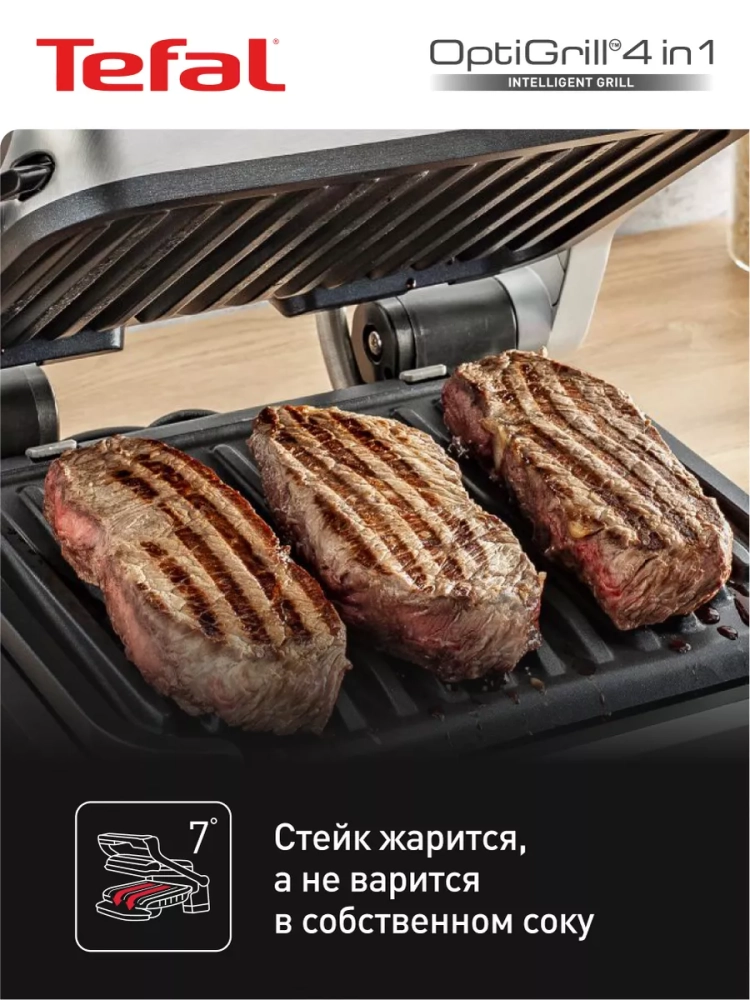 Умный электрогриль Tefal Optigrill+ XL GC774D30 - гарантирует идеальный стейк любой прожарки!