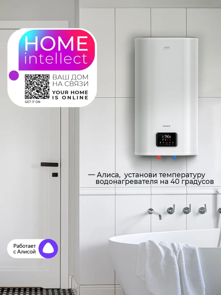 Home Intellect – это направление в развитии умного дома Timberk. Новое поколение водонагревателей из этой серии позволяет еще более комфортно и легко управлять горячей водой со своего смартфона и экономить на электроэнергии. Горячая вода – в любое время и в любом месте с умным домом Home Intellect.