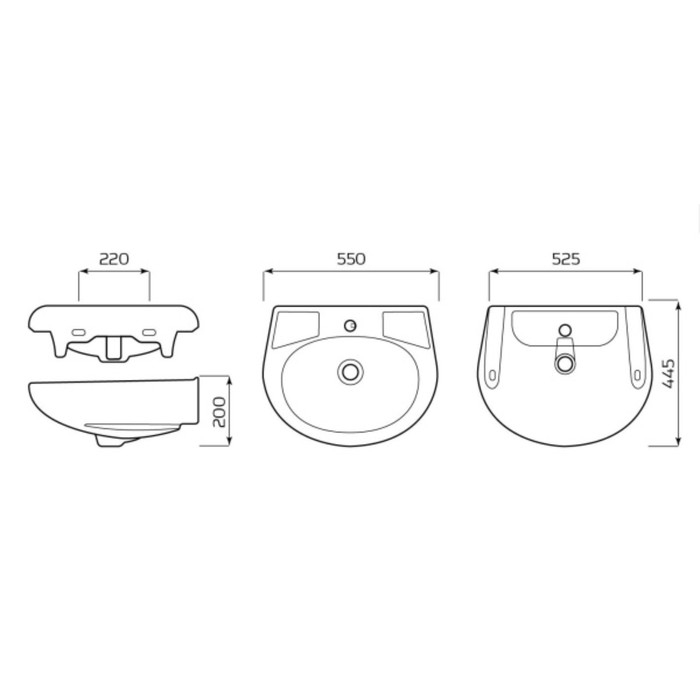Умывальник ЛЗСФ "Антей", ширина 550 мм, без перелива, с отв. под смеситель, без пьедестала