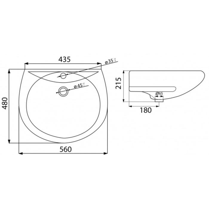 Умывальник ЛЗСФ "Оптима", ширина 560 мм, с переливом, с отверстием под смеситель