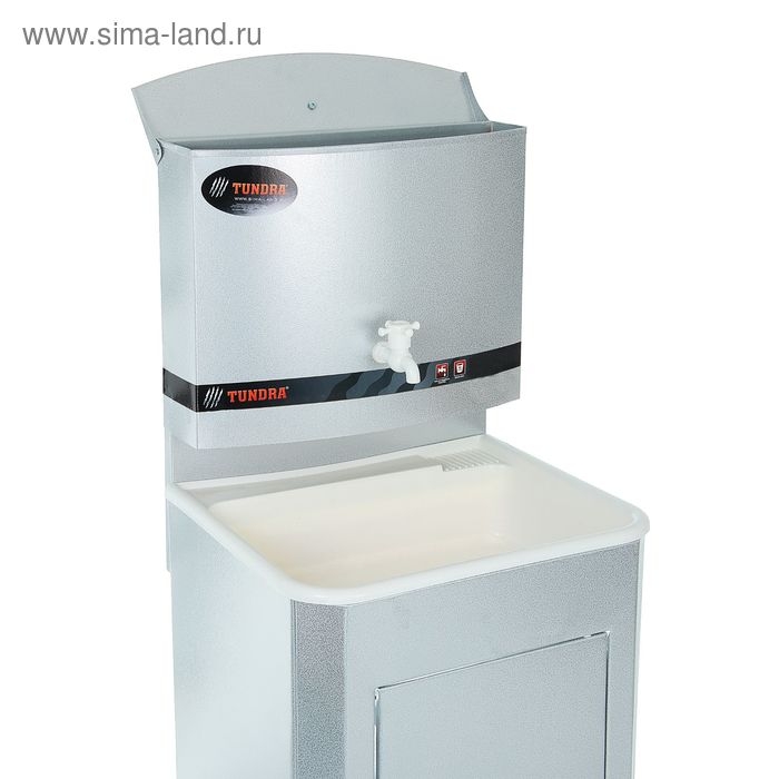 Умывальник TUNDRA — отличное приобретение для дачи, гаража, мастерской или других мест без центрального водоснабжения. Металлическая конструкция цвета белого золота проста в эксплуатации и уходе, обладает высокой износоустойчивостью. Раковина выполнена из пластика, а на бак для воды нанесено невосприимчивое к коррозии запатентованное покрытие.
