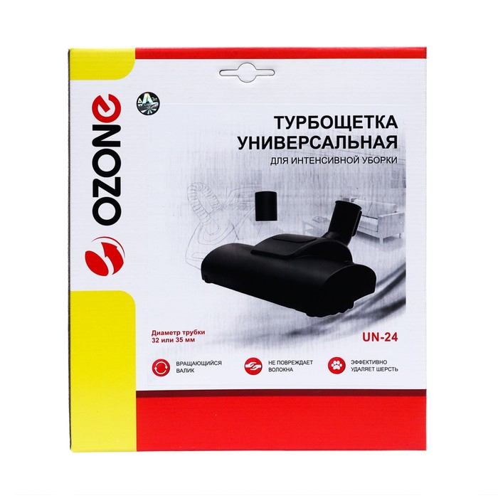 Универсальная турбощетка для пылесоса Ozone для интенсивной уборки - это мощный инструмент для борьбы с пылью, волосами и шерстью животных. Она оснащена вращающимися щетинками, которые эффективно удаляют загрязнения с любых поверхностей.