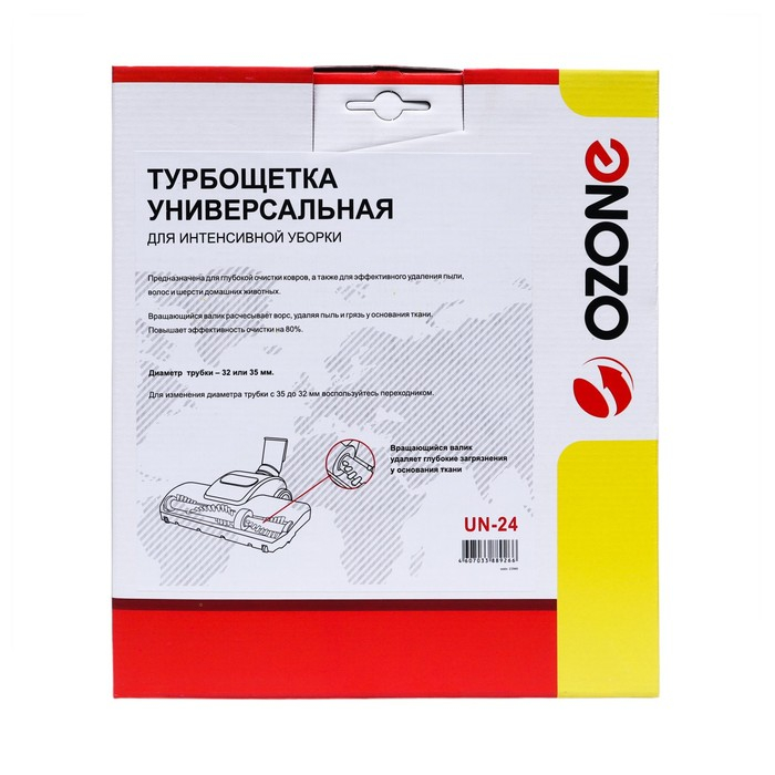 Турбощетка Ozone совместима с трубками диаметром 32 и 35 мм, что делает ее универсальной и подходящей для большинства моделей пылесосов различных брендов.