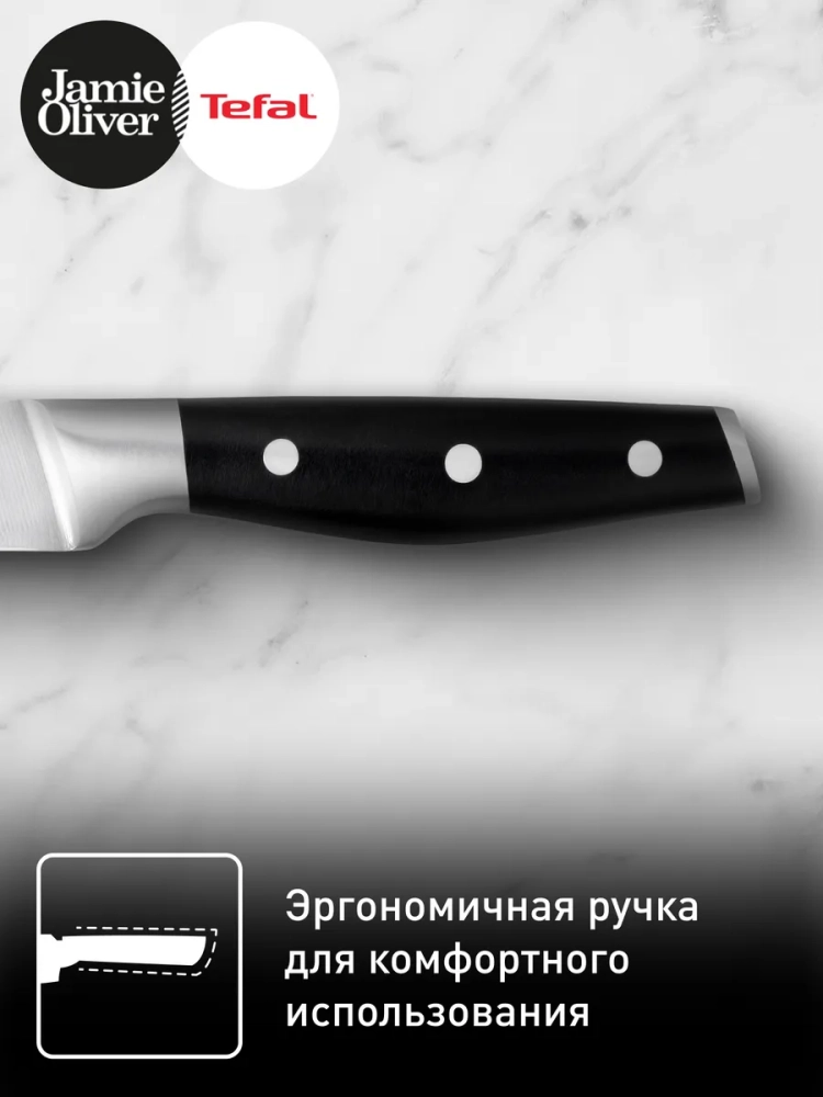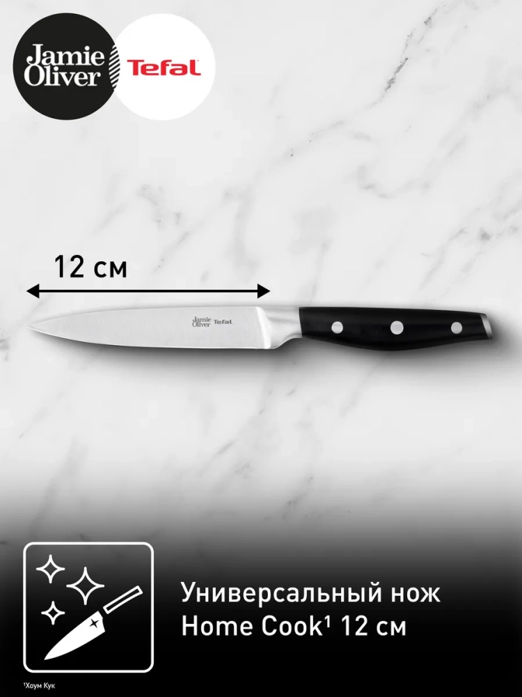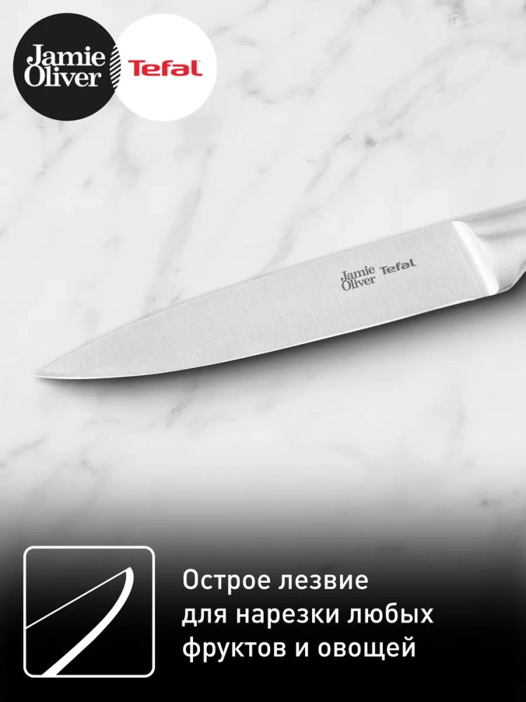 Универсальный нож Tefal Jamie Oliver K2670944. Уникальные кухонные ножи от Джейми Оливера и Tefal. Джейми Оливер и Tefal объединили все лучшее из мира кулинарии. Страсть к приготовлению изысканной еды и богатый опыт Джейми соединились с технологиями и производственными возможностями Tefal для создания эксклюзивных продуктов, которые уже почти 20 лет дарят начинающим поварам и опытным шефам искреннее удовольствие от сотворения кулинарных шедевров.