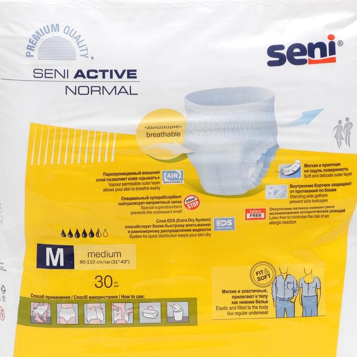 Урологические трусы для взрослых Seni Active Normal, для средней и тяжёлой степени недержания, размер M, 30 шт