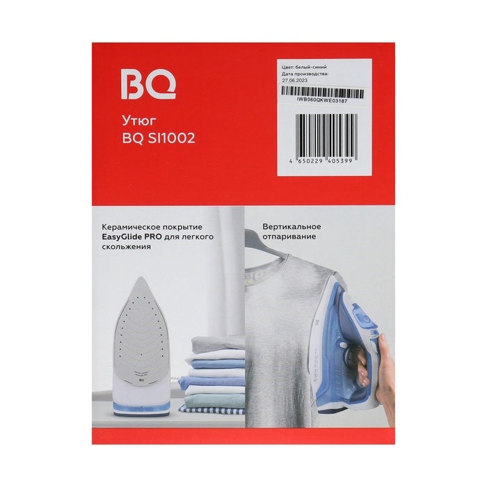 Утюг BQ SI1002, 2600 Вт, керамическая подошва, 30 г/мин, 320 мл, бело-синий