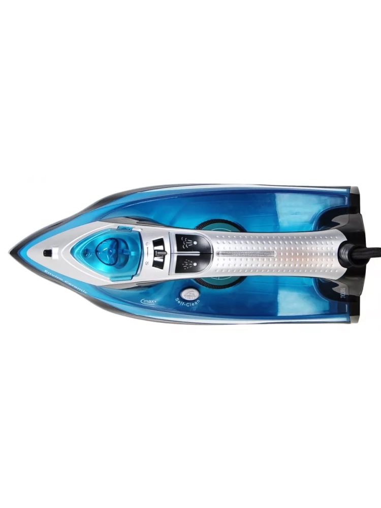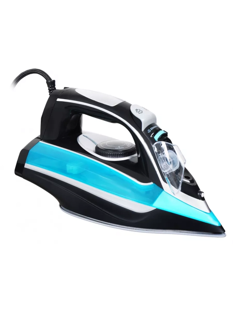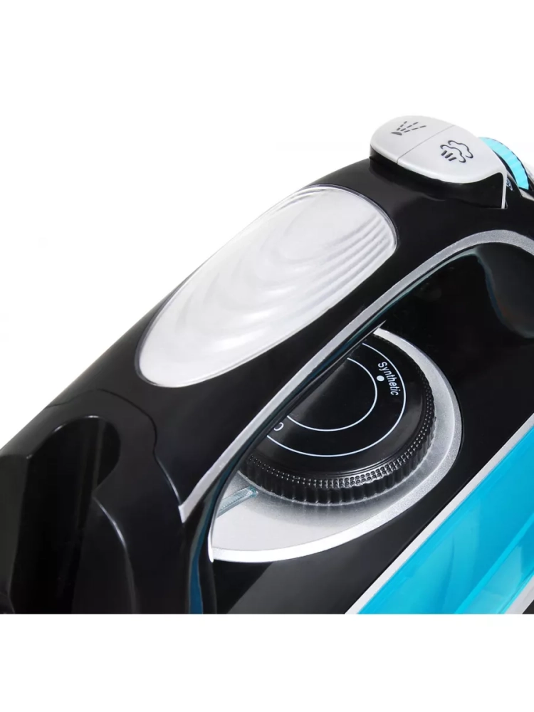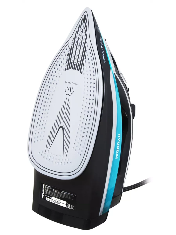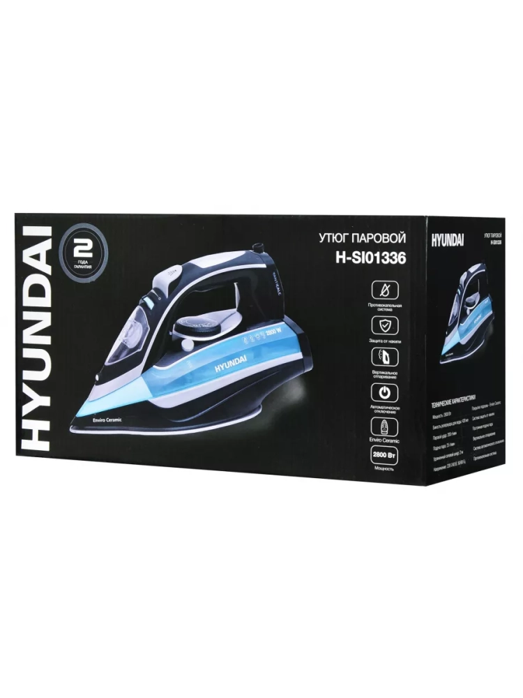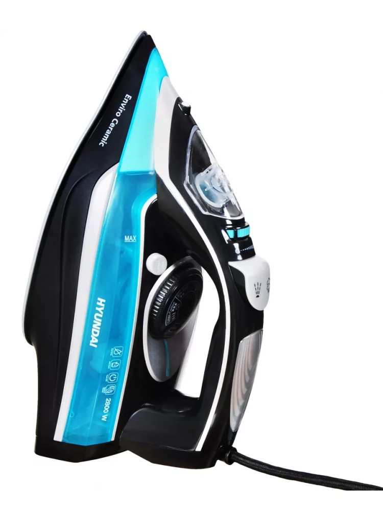 Утюг Hyundai H-SI01336 черный/голубой, мощность 2800Вт, подошва утюга керамическая Enviro Ceramic, паровой удар 200г, емкость для воды 420мл, длина шнура 2м