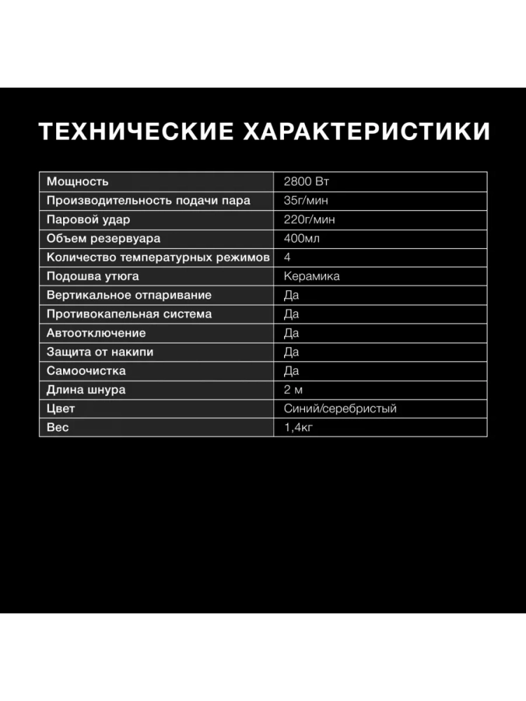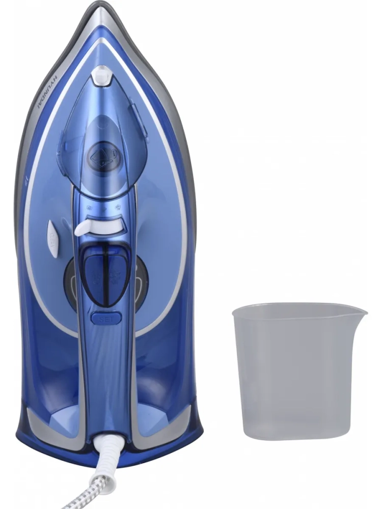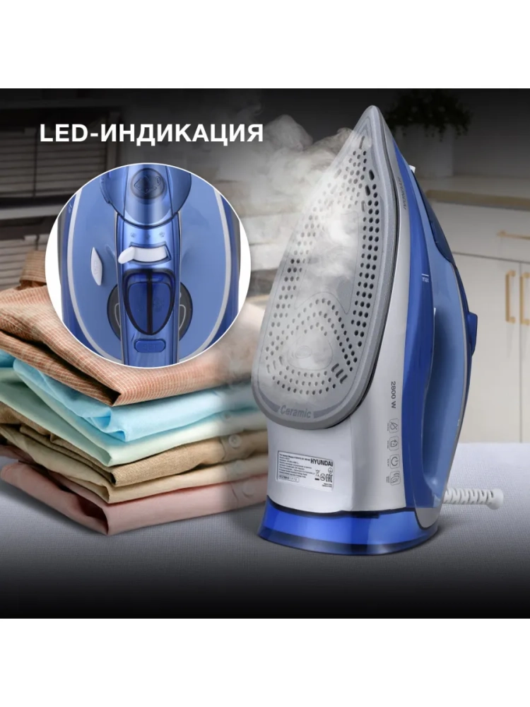 Утюг Hyundai H-SI01670 синий/золотистый, мощность 2800Вт, подошва утюга керамическая Enviro Ceramic, паровой удар 220г, емкость для воды 400мл, длина шнура 2м