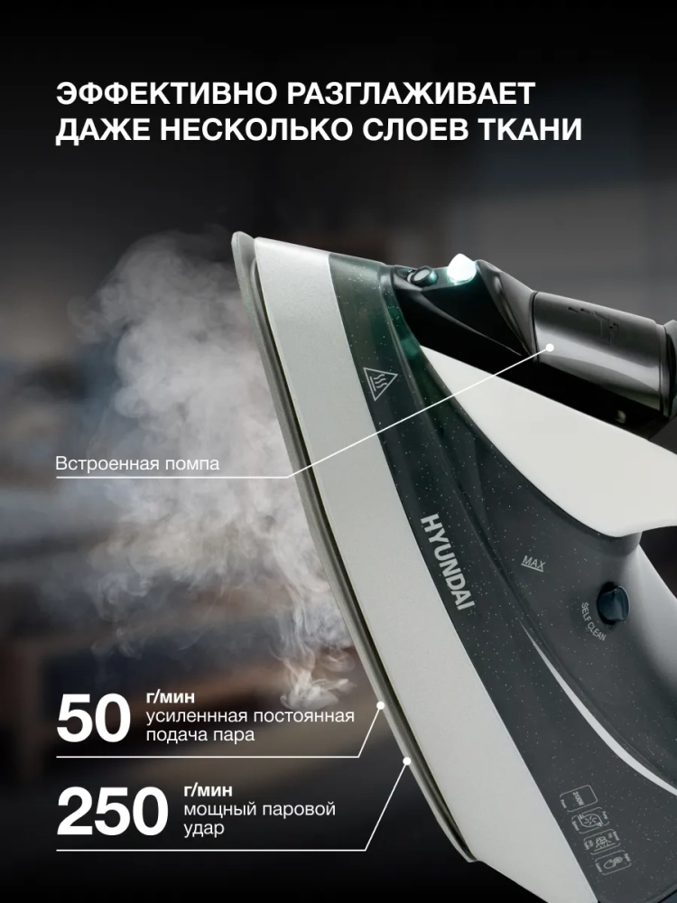 Утюг Hyundai H-SIP3100 – это сочетание передовых технологий и эргономичного дизайна. С мощностью 3100 Вт он мгновенно нагревается и обеспечивает безупречное глажение даже самых плотных тканей. Подошва из нержавеющей стали гарантирует плавное скольжение и долговечность, а паровой удар легко разглаживает даже сложные заломы.