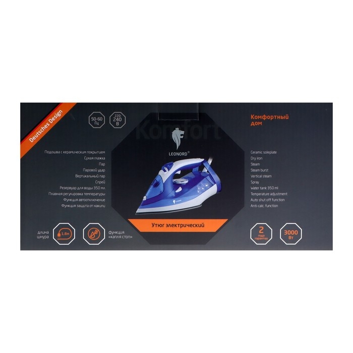 Утюг Leonord LE-1801, 3000 Вт, керамическая подошва, 350 мл, бело-синий