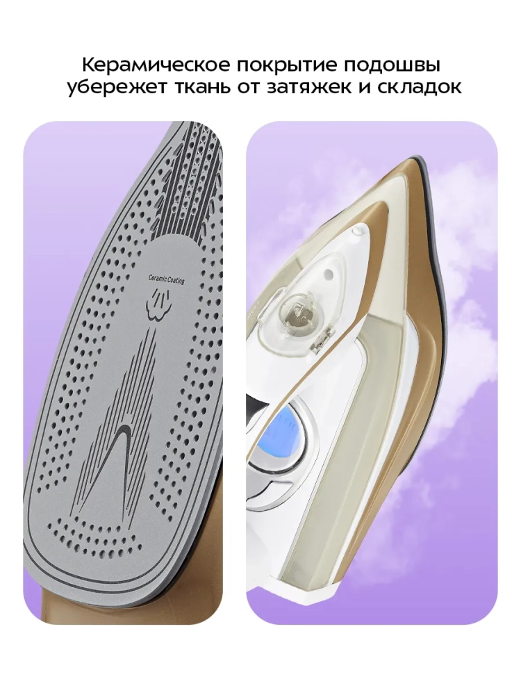 Гладильная система утюга Kitfort включает в себя возможность вертикального отпаривания, что особенно удобно для деликатных тканей и одежды сложного кроя. Паровой удар и постоянная подача пара обеспечивают идеальные результаты глажки. Утюг с антипригарным покрытием и керамической подошвой — это надежность и долговечность в каждом движении.