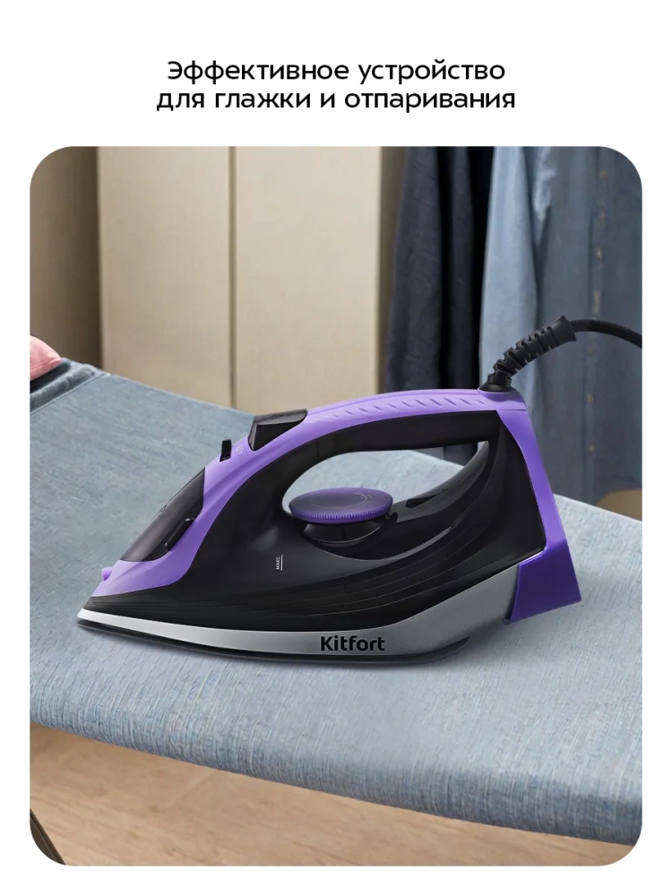 Утюг Kitfort KT-2627 — это современное и эффективное устройство для глажки и отпаривания. Утюг оснащен функцией парового удара и распыления воды. Резервуар для воды удобно наполнять с помощью мерного стакана, который входит в комплект.
