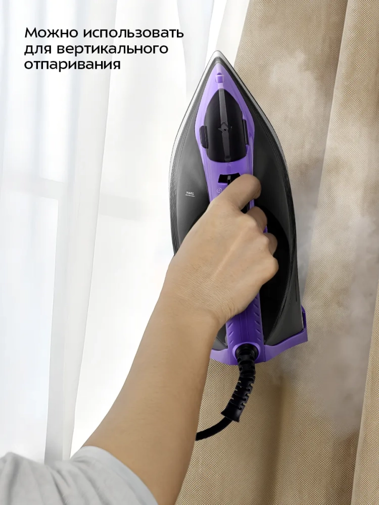 Прибор имеет небольшой вес и компактный размер. Керамическая подошва утюга хорошо скользит и легко очищается. Такая подошва утюга не сделает затяжек на одежде и лишних складок. Утюг КТ-2627 можно использовать для вертикального отпаривания. Вы можете отпарить занавески и портьеры (для этого их не обязательно снимать), обивку мягкой мебели, матрасы, а также одежду, висящую на плечиках, сушилке для белья или веревке. При этом вы не только разгладите складки, но и освежите вещи, а также продезинфицируете их, так как горячий пар убивает пылевых клещей и другие микроорганизмы.