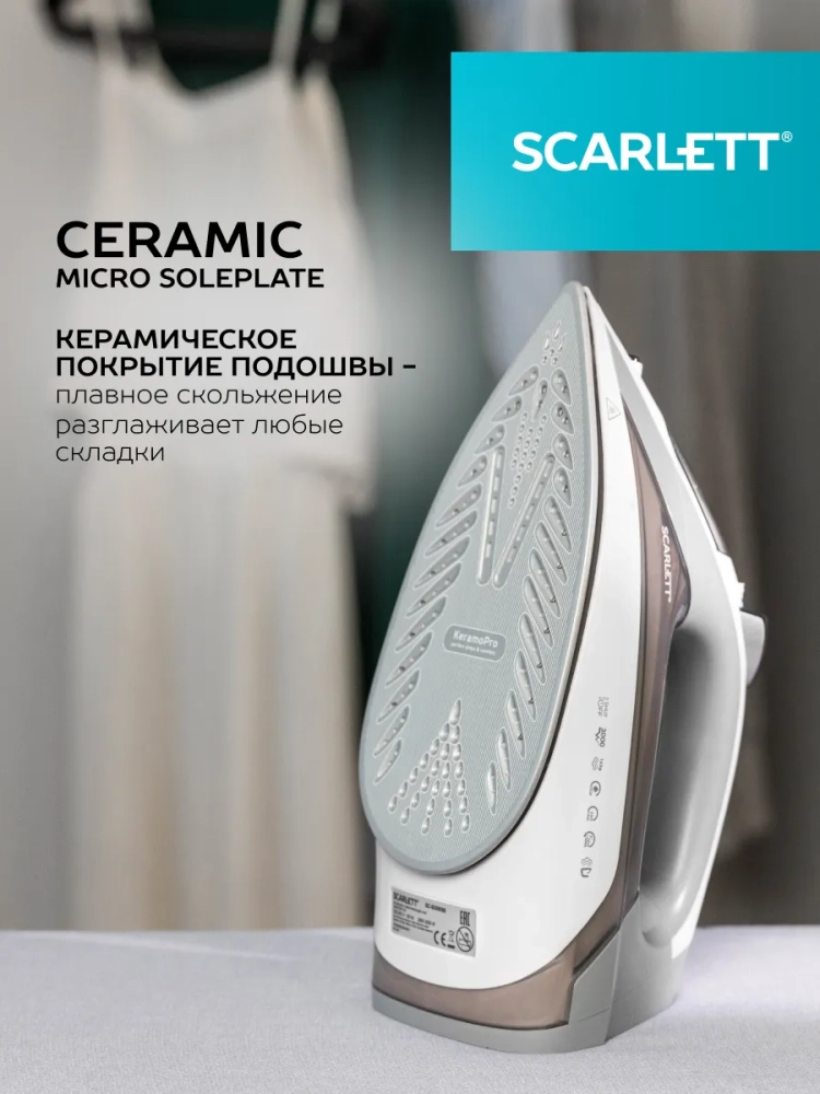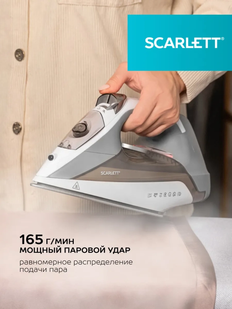 Утюг Scarlett SC–SI30K66, выполненный в сером цвете, оснащён подошвой с керамическим покрытием KeramoPro, которая обеспечивает отличное скольжение и бережное отношение ко всем видам тканей. Максимальная мощность 3000 Вт позволит в считанные минуты справиться даже с тканями со сложной фактурой, а различные температурные режимы помогут выбрать оптимальный для того, чтобы самые деликатные ткани выглядели после глажения идеально. В режиме парового удара создает 165 грамм пара в минуту, расправляя даже самые непослушные складки. Функция вертикального отпаривания позволяет привести вещи в безупречный вид, не снимая их с вешалки. Легко ухаживать за утюгом позволит функция самоочистки, а система ANTI-CALC защитит от накипи и продлит срок его службы. Оптимальный вес способствует разглаживанию неровностей без излишней нагрузки на руки, а узкий носик позволяет идеально отгладить даже самые труднодоступные места.