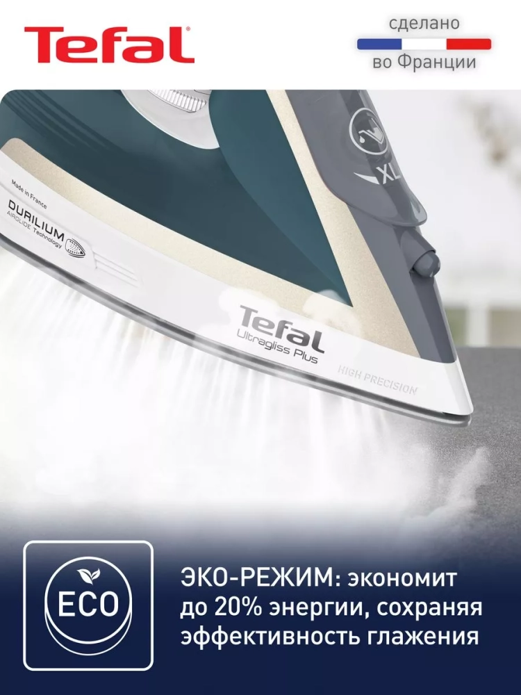 Благодаря 100% активным паровым отверстиям пар равномерно распределяется по всей подошве утюга. Подошва имеет на 30% больше паровых отверстий по сравнению с предыдущим поколением утюгов Ultragliss для максимальной эффективности глажения. Durilium Airglide – подошва №1 от Tefal. Она произведена по запатентованной технологии и гарантирует максимальное распределение пара, впечатляющую эффективность глажения и действительно долгий срок службы.
