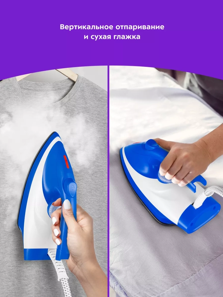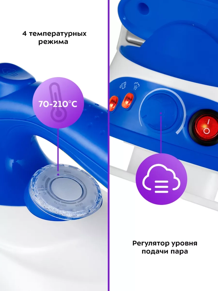 Подошва утюга выполнена из алюминия с керамическим покрытием, поэтому она хорошо скользит и легко очищается. Такой утюг не сделает затяжек на одежде и лишних складок. Паровую станцию КТ-9135 можно использовать для вертикального отпаривания. Вы можете отпарить занавески и портьеры (для этого их не обязательно снимать), обивку мягкой мебели, матрасы. Также вы можете отпаривать одежду, висящую на плечиках, сушилке для белья или веревке. При этом вы не только разгладите складки, но и освежите вещи, а также продезинфицируете их, так как горячий пар убивает пылевых клещей и другие микроорганизмы.
