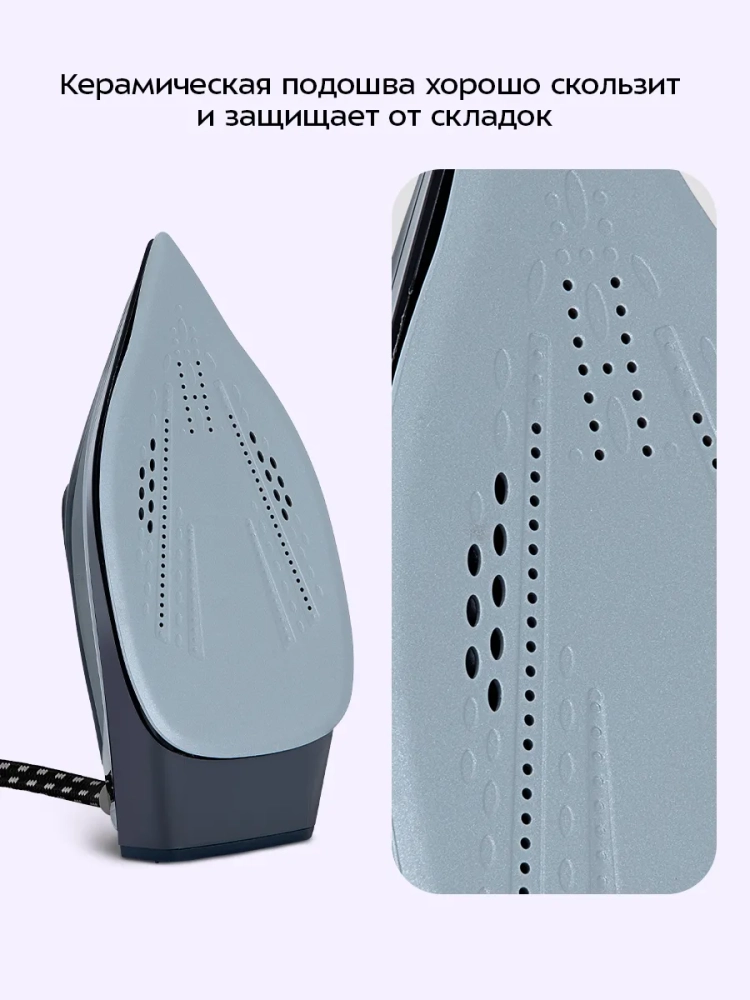 Парогенератор Kitfort КТ-9311 оснащен керамической подошвой, которая обеспечивает равномерное распределение тепла и легкое скольжение по ткани. Это позволяет избежать затяжек и повреждений одежды. Паровой утюг идеально подходит для глажки брюк, рубашек и других предметов гардероба, требующих особого ухода. Паровые утюги с такой технологией значительно упрощают процесс ухода за одеждой.