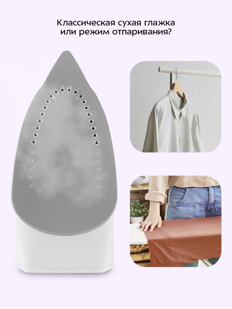 У прибора есть два уровня подачи пара. По умолчанию установлен высокий уровень подачи пара, также можно выбрать низкий уровень подачи пара. Паровая станция оснащена функцией парового удара, а также режимом очистки от накипи и напоминанием о необходимости очистки.