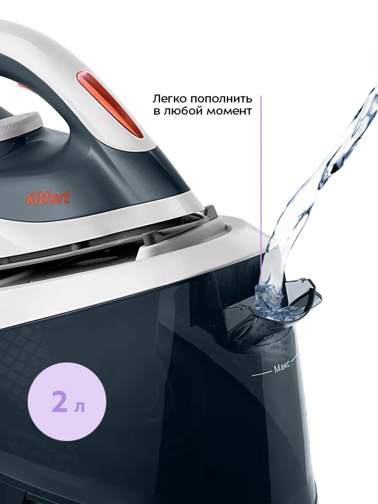 Паровая станция Kitfort KT-9319 — это современное устройство для глажки, заменяющее утюг и отпариватель. Прибор состоит из утюга для глажки и подставки для утюга со съемным резервуаром для воды. Паровая станция позволяет гладить быстрее и эффективнее, чем утюг. Например, если на глажку рубашки и брюк обычным утюгом уходит около 15 минут, то при помощи паровой станции вы справитесь за 5 минут. Благодаря силе пара, создаваемого с помощью паровой станции, можно эффективно гладить постельное белье и полотенца, сложенные в несколько слоев.