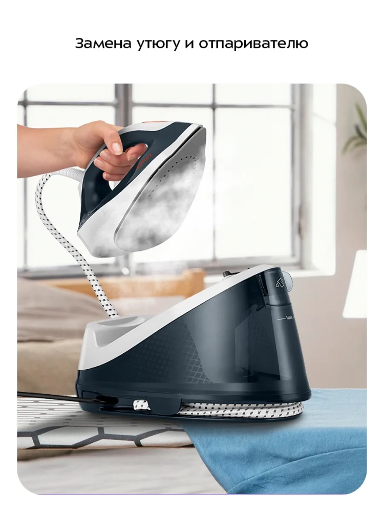 Отличительная особенность всех паровых станций — это большой резервуар для воды: емкость резервуара в паровой станции КТ-9319 составляет 2 л, тогда как в утюгах в среднем 0,3 л.