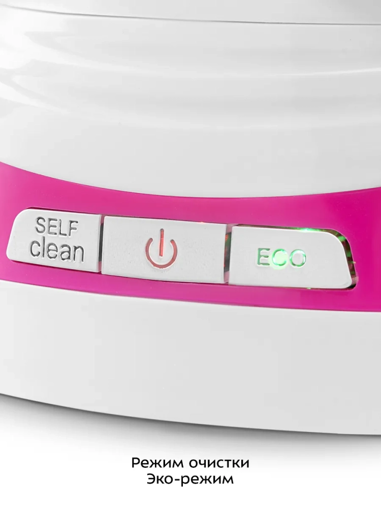 Паровая станция оснащена функцией парового удара, а также режимом очистки, защитой от накипи и протекания. Также у данной модели есть эко-режим, при котором прибор будет потреблять меньшее количество электроэнергии за счет уменьшения подачи пара.