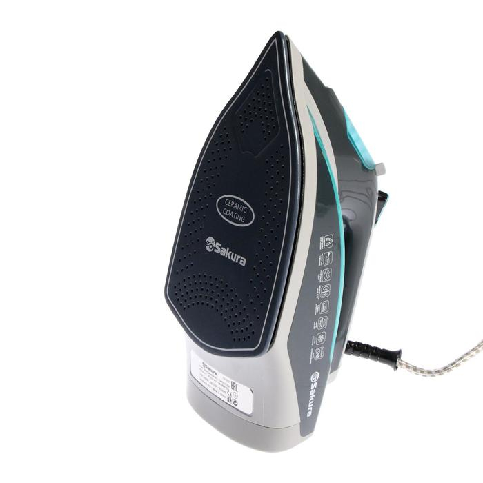 Утюг Sakura SA-3061CG Premium, 2600 Вт, керамическая подошва, 400 мл, серо-бирюзовый