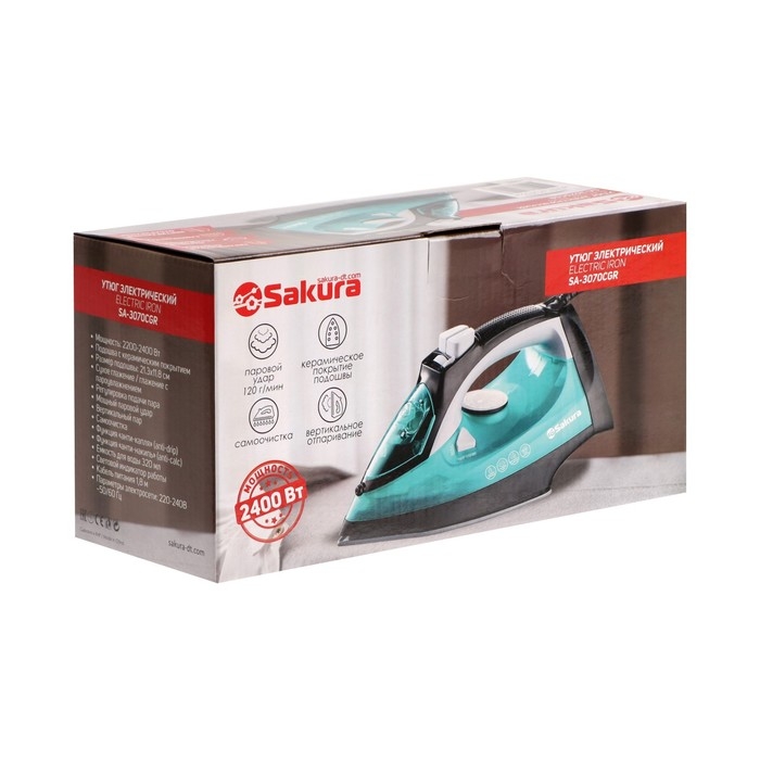 Утюг Sakura SA-3070 CGR, 2400 Вт, керамическая подошва, 320 мл, анти-накипь, бирюзовый