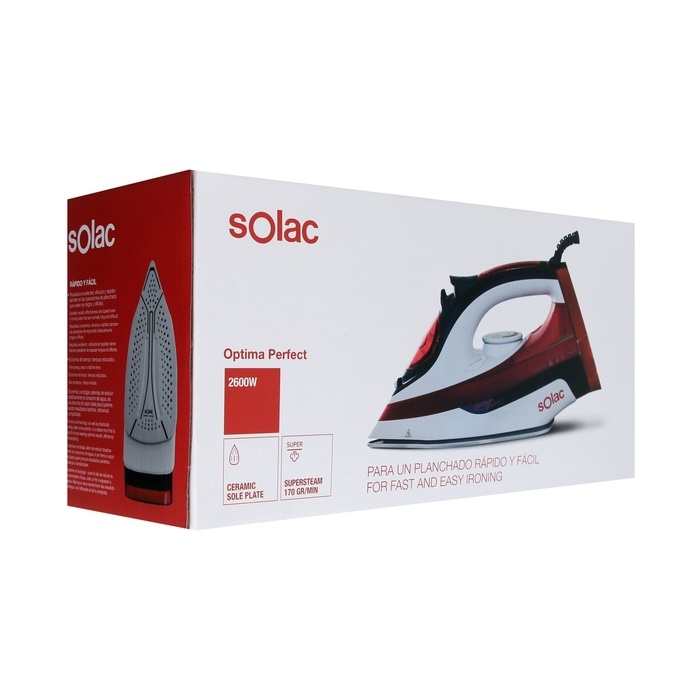 Утюг Solac Optima Perfect PV2014, керамическая подошва, 2600 Вт, 35 г/мин, 380 мл, красный