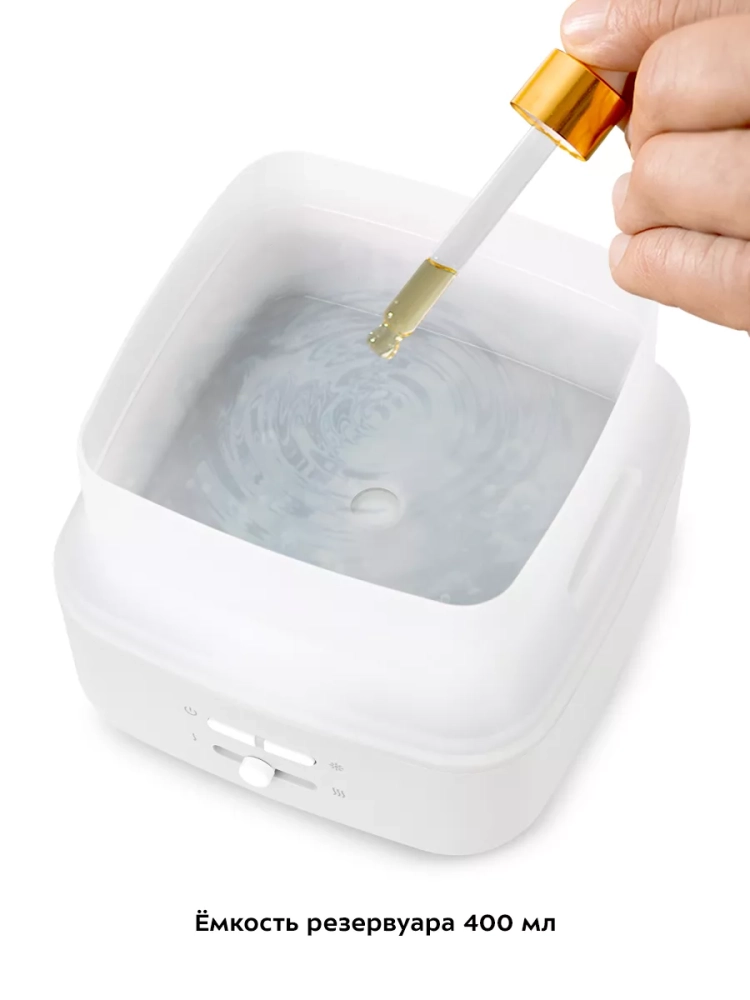 Ароматный микроклимат: Добавьте в резервуар несколько капель любимого эфирного масла и наслаждайтесь приятным, ненавязчивым ароматом, который распространяется вместе с освежающим туманом.