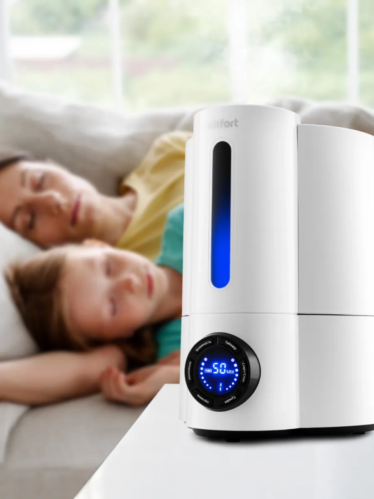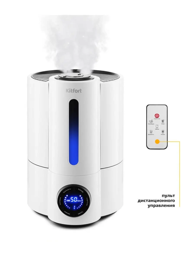 Ультразвуковой увлажнитель воздуха Kitfort KT-2801 увлажняет воздух в помещении и ионизирует его, создавая хороший микроклимат для проживания людей. Он оборудован встроенным гигрометром, поэтому может поддерживать заданный вами уровень влажности. Ионизация - это процесс наполнения помещения отрицательно заряженными ионами воздуха. Дышать таким воздухом очень полезно для организма человека. Так, например, очень много отрицательно заряженных ионов в сосновом лесу, на морском побережье, в горах. В увлажнителе Китфорт KT-2801 можно установить целевую влажность воздуха 50-95 % с шагом 5, время таймера - 1, 2, 4 или 8 часов и интенсивность тумана 1, 2 или 3.В комплекте к увлажнителю идет пульт дистанционного управления, а также бутылочка для ароматического масла, чтобы наполнить воздух в комнате приятным ароматом.КТ-2801 прост в эксплуатации и обслуживании, отличается высокой надежностью в работе. Может использоваться в помещениях и квартирах, площадь которых не превышает 15-20 кв.м.