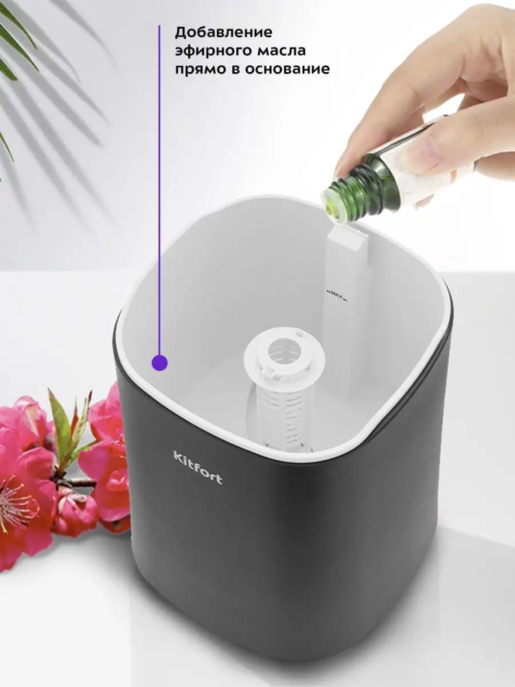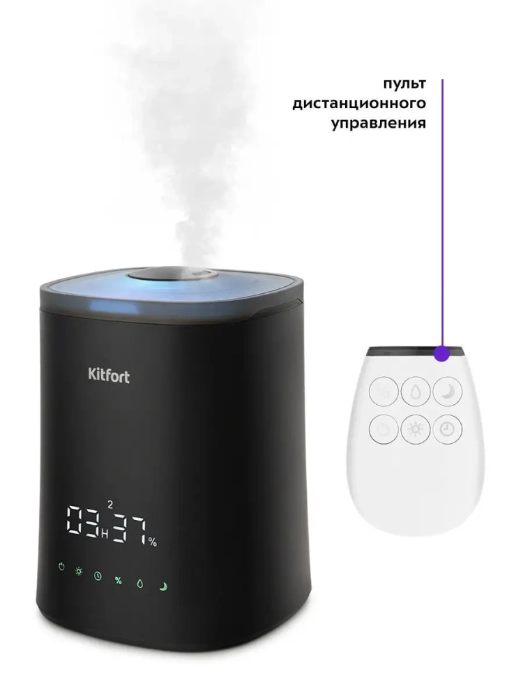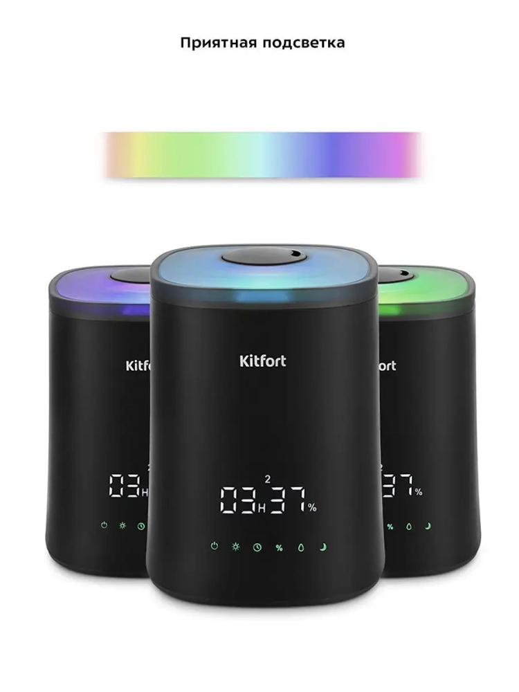 Ультразвуковой увлажнитель-ароматизатор воздуха Kitfort KT-2808 увлажняет воздух в помещении, создавая хороший микроклимат для проживания людей. Вы можете использовать этот прибор и как ароматизатор: достаточно добавить в резервуар несколько капель любимого эфирного масла на водной основе. Во время работы увлажнителя ароматическое вещество будет испаряться, и вместе с туманом выдуваться наружу потоком воздуха. В увлажнителе-ароматизаторе можно установить целевую влажность воздуха 30-75 % с шагом 5, время таймера - 2, 4 или 6 часов и интенсивность тумана 1, 2 или 3. В комплекте к увлажнителю идет пульт дистанционного управления. В увлажнителе-ароматизаторе можно включить или выключить подсветку в корпусе. Корпус увлажнителя-ароматизатора подсвечивается изнутри разными цветами, его можно использовать в ночное время в качестве ночника. КТ-2808 простой в эксплуатации и обслуживании, отличается высокой надежностью в работе. Может использоваться в помещениях, площадь которых не превышает 25-30 кв.м.