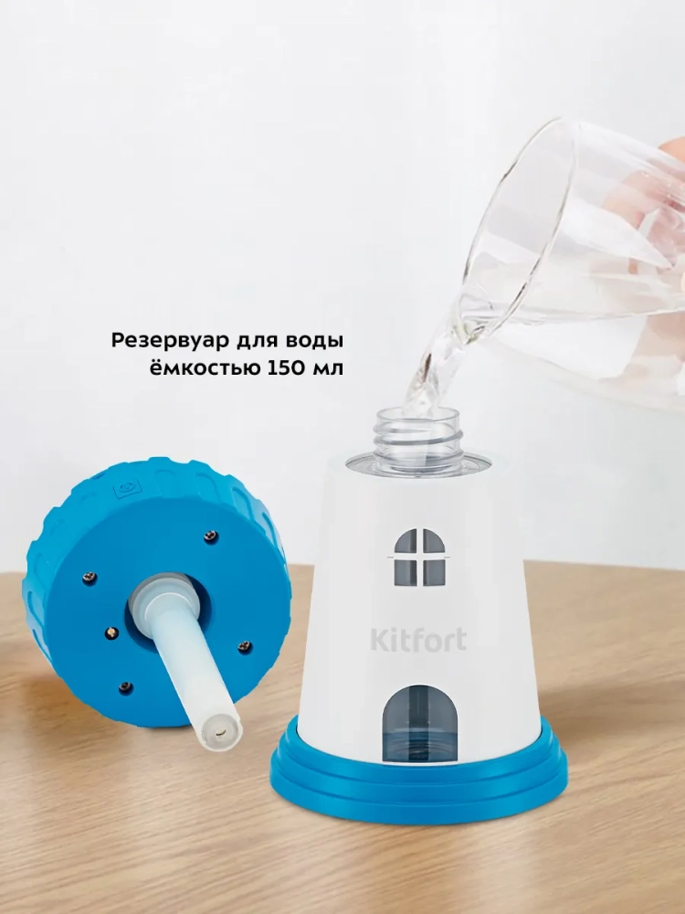Увлажнитель воздуха Kitfort КТ-2864 — компактный портативный прибор, который создаст благоприятный микроклимат рядом с вами. Он будет увлажнять воздух вокруг области его размещения, поэтому можно комфортно находиться на рабочем месте, крепко спать или заниматься любыми другими делами, пока рядом с вами находится увлажнитель воздуха. КТ-2864 является ультразвуковым увлажнителем, который считается более эффективным из существующих увлажнителей воздуха. Принцип работы такого увлажнителя прост: в резервуар для воды погружена трубка, внутри которой находится подпружиненный фильтр, по которому благодаря капиллярному эффекту влага поднимается вверх к излучателю, который с помощью ультразвуковых колебаний выбивает из воды мельчайшие капельки воды, создавая туман. Этот туман выдувается наружу, а затем частицы воды разносятся по объему помещения потоком воздуха. Дизайн устройства в виде милого маяка порадует вас и окружающих. У устройства простое и легкое управление одной кнопкой. Также можно включить теплую подсветку, которая создаст уютную атмосферу. Устройство не предназначено для увлажнения всего помещения, оно будет увлажнять воздух вокруг места его размещения.