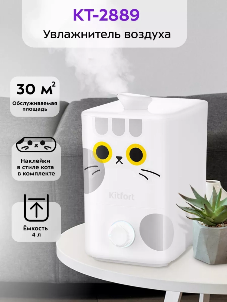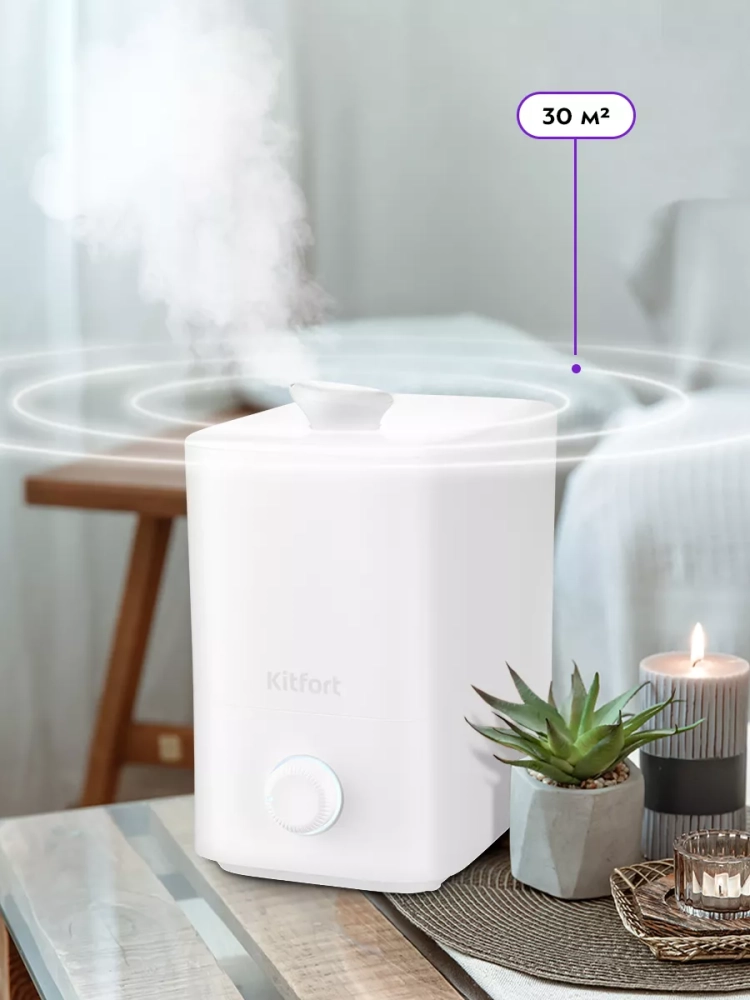 Ультразвуковой увлажнитель воздуха Kitfort KT-2889 увлажняет воздух в помещении, создавая хороший микроклимат для проживания людей. Увлажнитель КТ-2889 прост в эксплуатации и обслуживании и может использоваться в помещениях, площадь которых не превышает 30 м².