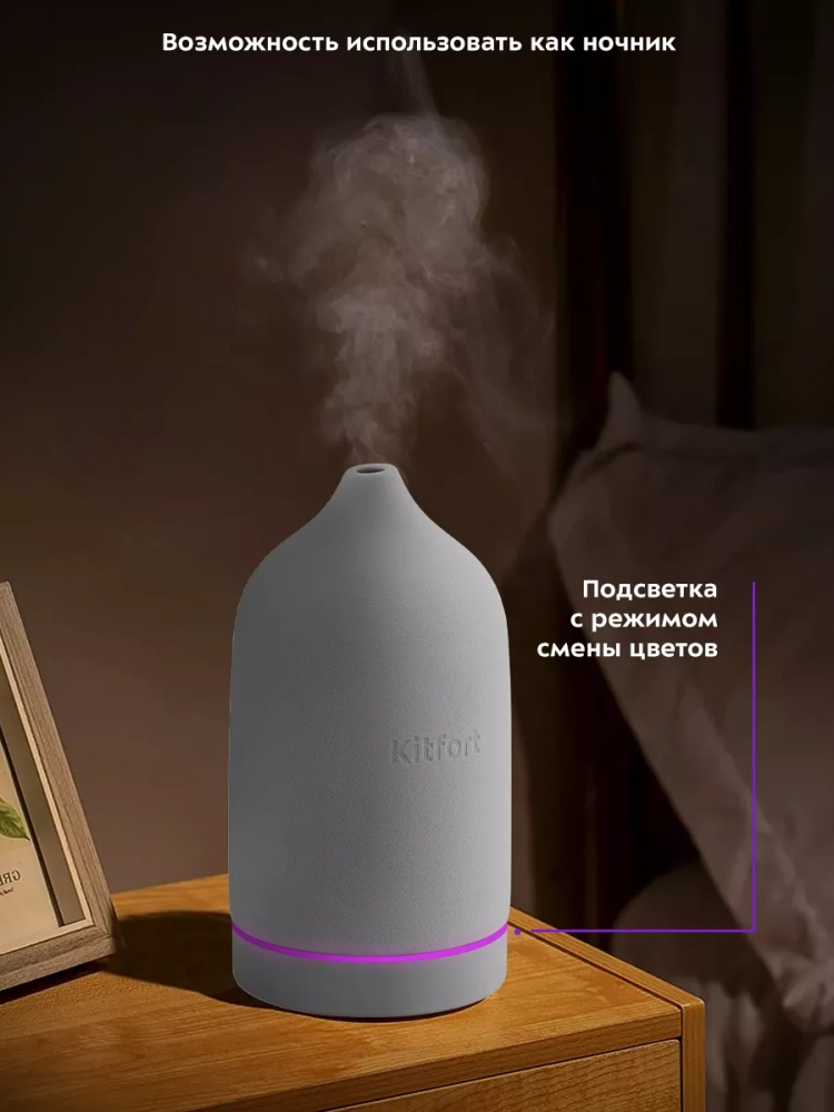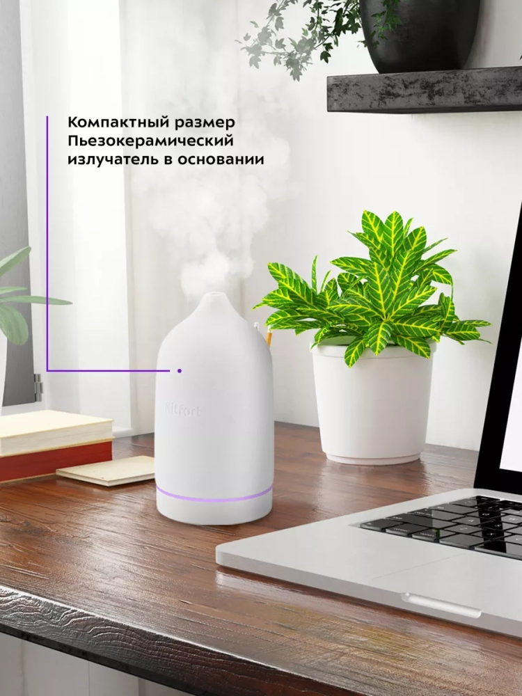 Увлажнитель-ароматизатор воздуха Kitfort КТ-2892 — компактный прибор, который создаст благоприятный микроклимат рядом с вами. Добавьте в резервуар для воды несколько капель эфирного масла, чтобы во время работы увлажнителя ароматическое вещество испарялось и вместе с туманом выдувалось наружу потоком воздуха, создавая вокруг приятный и ненавязчивый аромат. Он будет увлажнять воздух вокруг области его размещения, поэтому можно комфортно находиться на рабочем месте, крепко спать или заниматься любыми другими делами, пока рядом с вами находится увлажнитель воздуха.