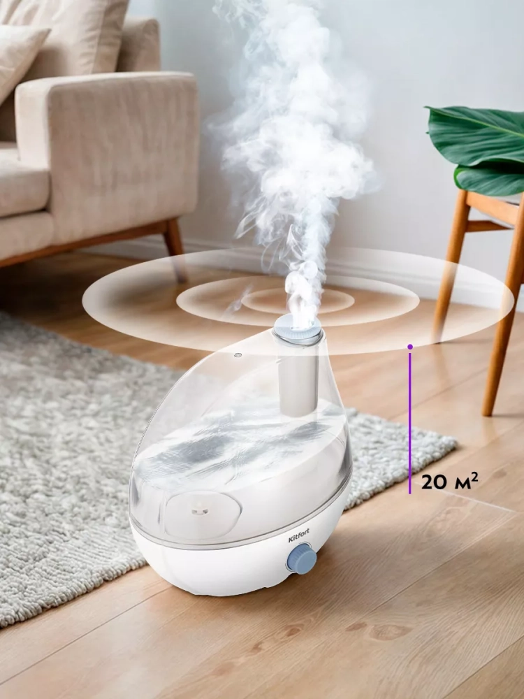Увлажнитель воздуха КТ-3819 простой в эксплуатации и обслуживании, отличается высокой надежностью в работе. Может использоваться в помещениях, площадь которых не превышает 20 м².